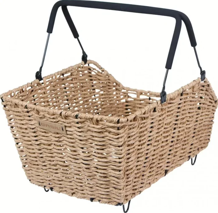 Basil Cento Rattan Look Gepäckträgerkorb 22 L – braun, wetterfest, Multi-System (i-Rack / Racktime / Carrymore / Soft-Grip)