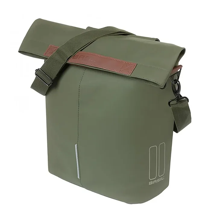 BASIL City Fahrradshopper 14-16 Liter – MIK Hooks Einzeltasche mit Magnet-Faltverschluss, Innenfach & LED-Montage – Moosgrün