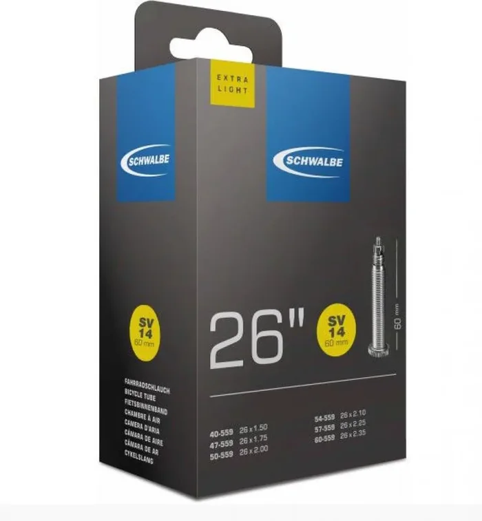 Schwalbe Schlauch SV14 extra leicht 26×1.50-2.10″ 40/60-559 SV60mm
